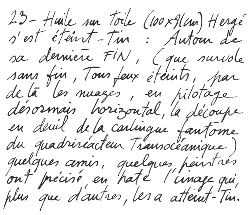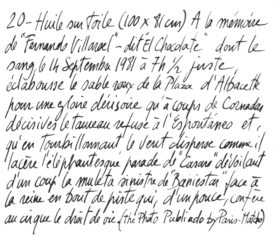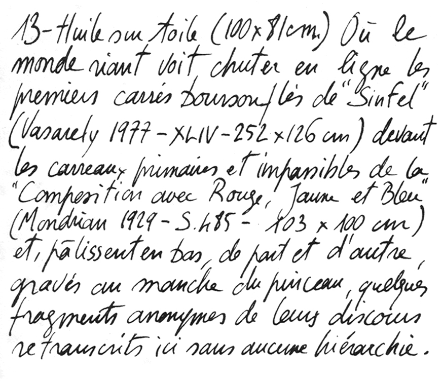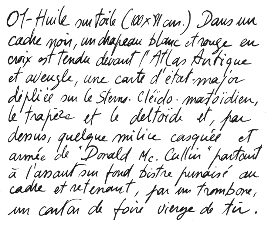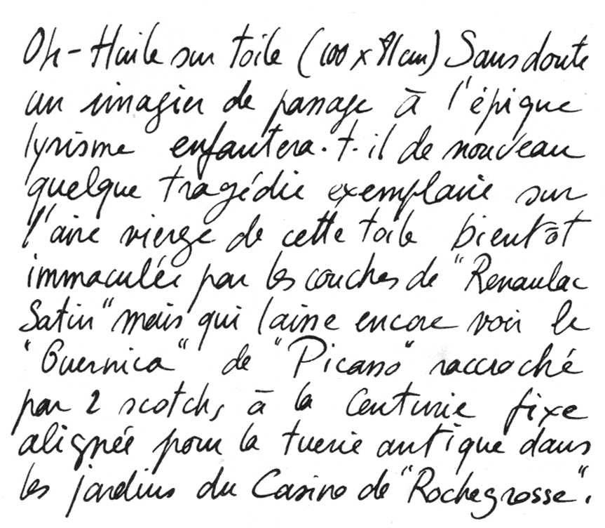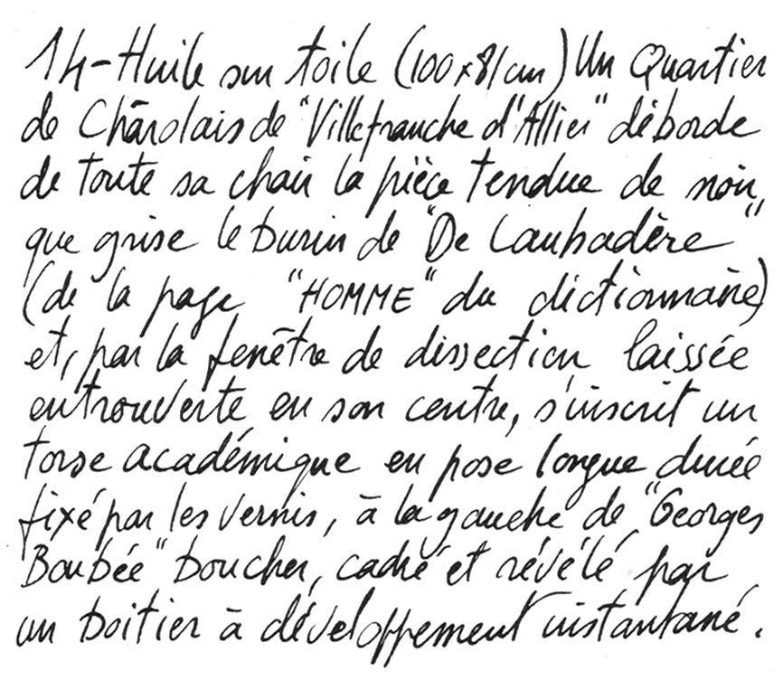 – SOUVENIR DE PEINTURE (38 pages) développe ce qui a prévalu à la réalisation de la série des ”12 QUARANTE FIGURE” (qui s’est poursuivie jusqu’à 25) et s’est achevée en 1984. Chaque peinture bénéficie d’une reproduction photographique accompagnée du titre de l’œuvre.