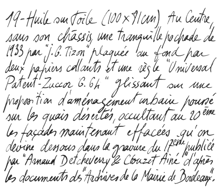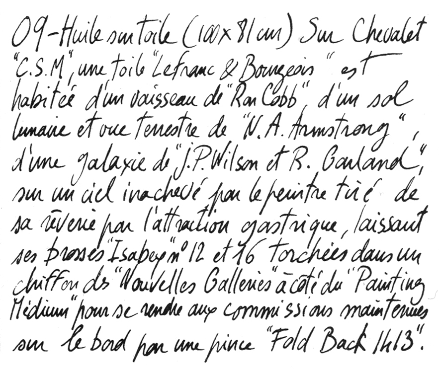 Les douze premières toiles de ce format ont été montrées à Bordeaux à l’ENTREPÔT LAINÉ durant la SEMAINE SIGMA en 1980.